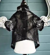 チェーン付き紋章のパッチがかっこいいレースのシャツです